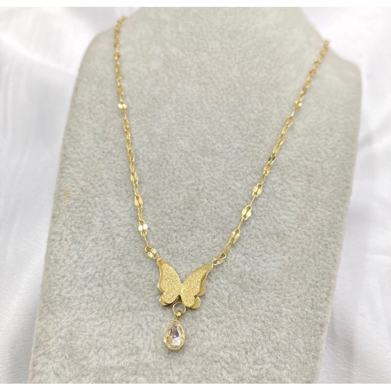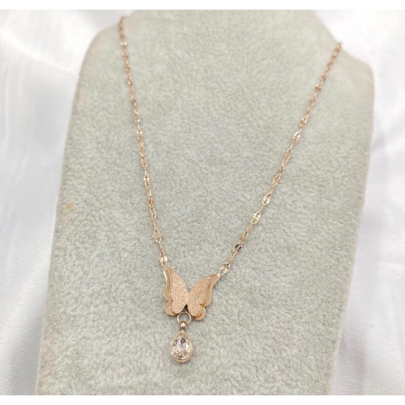 Detail kalung Titanium Wanita Korea Anti Karat Liontin kupu