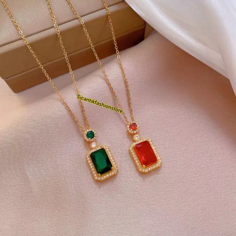KALUNG TITANIUM WANITA LIONTIN BATU MERAH DELIMA ASLI TITANIUM TRENDING KALUNG WANITA TERBARU TERLARIS KALUNG WANITA RANTAI KECIL LAPIS EMAS 18K LIONTIN BATU HIJAU ANTI KARAT SELAMANYA