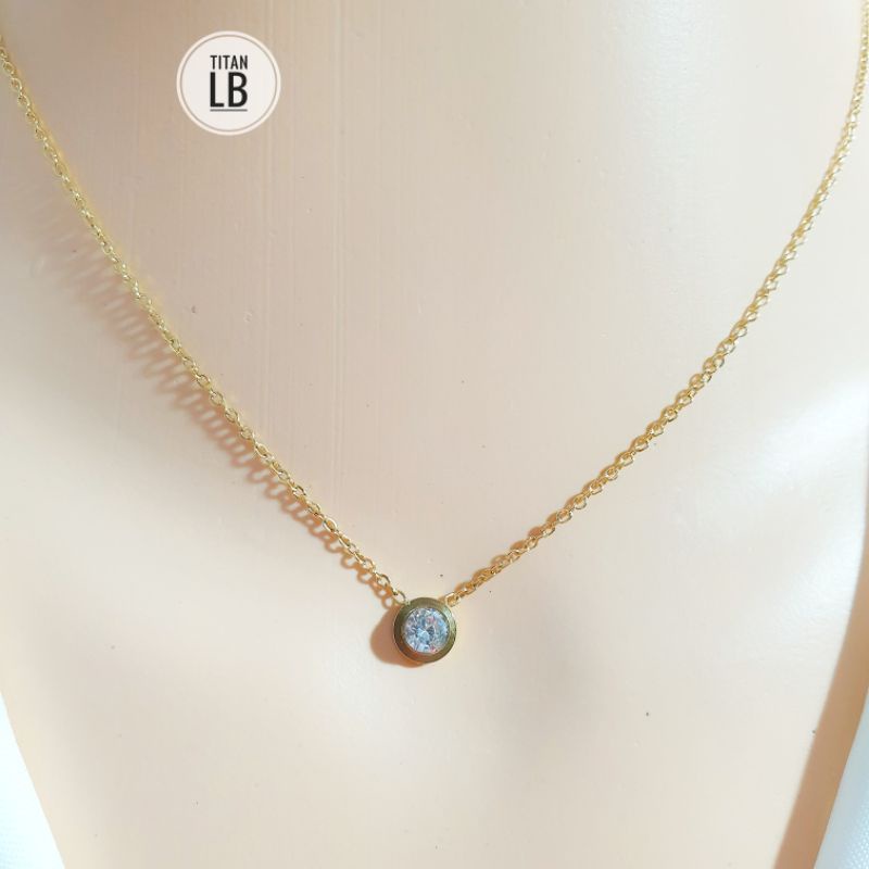 Detail Kalung Titanium Warna Gold Rantai Kecil Dengan Liontin Bulat Polos N29122106