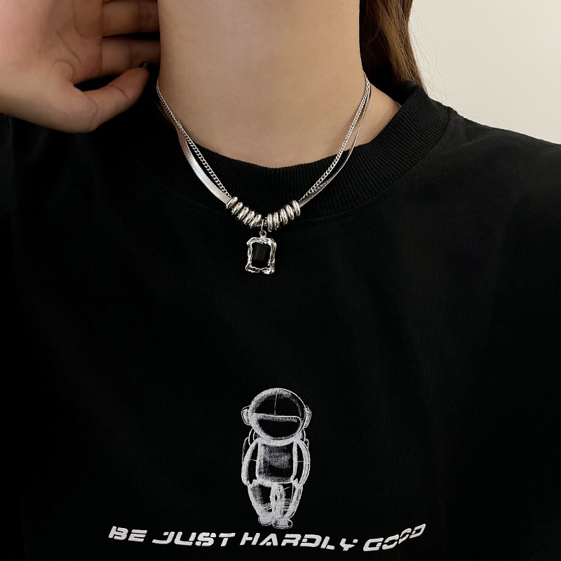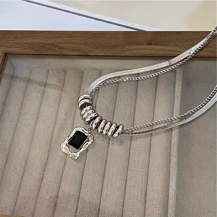 Detail Kalung Unik Dua Lapis Dengan Liontin Cubic Zirconia Bentuk Persegi Untuk Pria Dan Wanita
