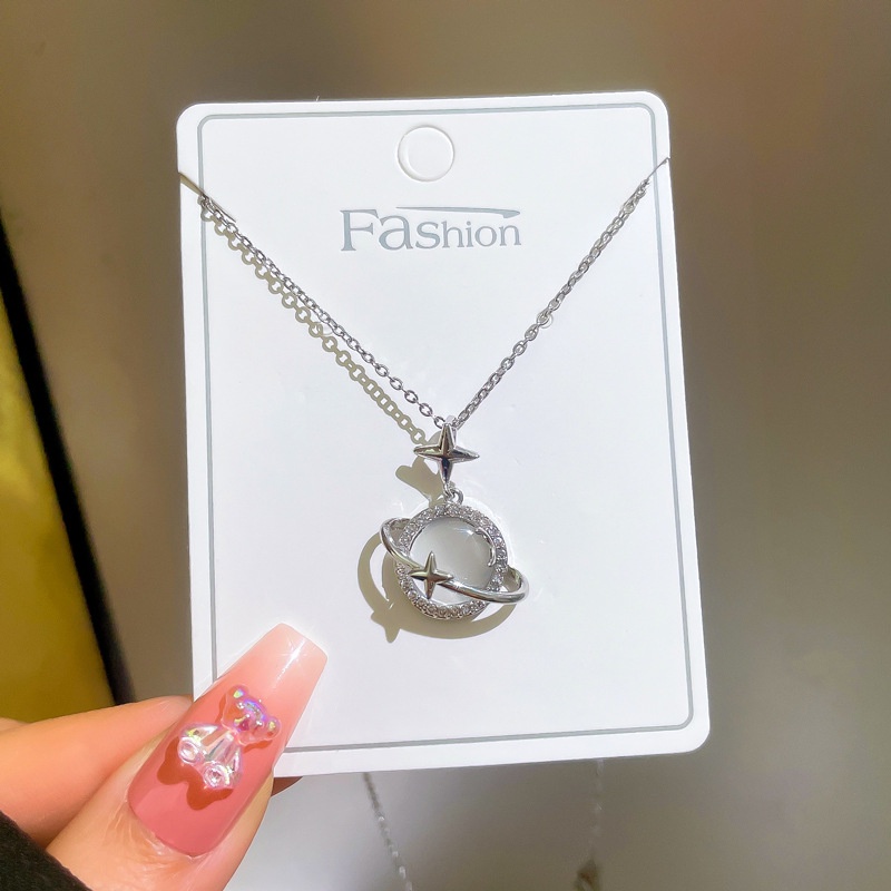 Detail Kalung Wanita Baja Titanium Berlapis Emas 18k Opal Planet Pendant Necklace Rantai Klavikula Mewah Ringan