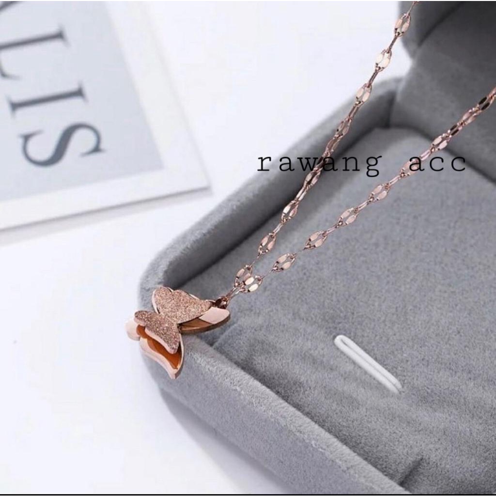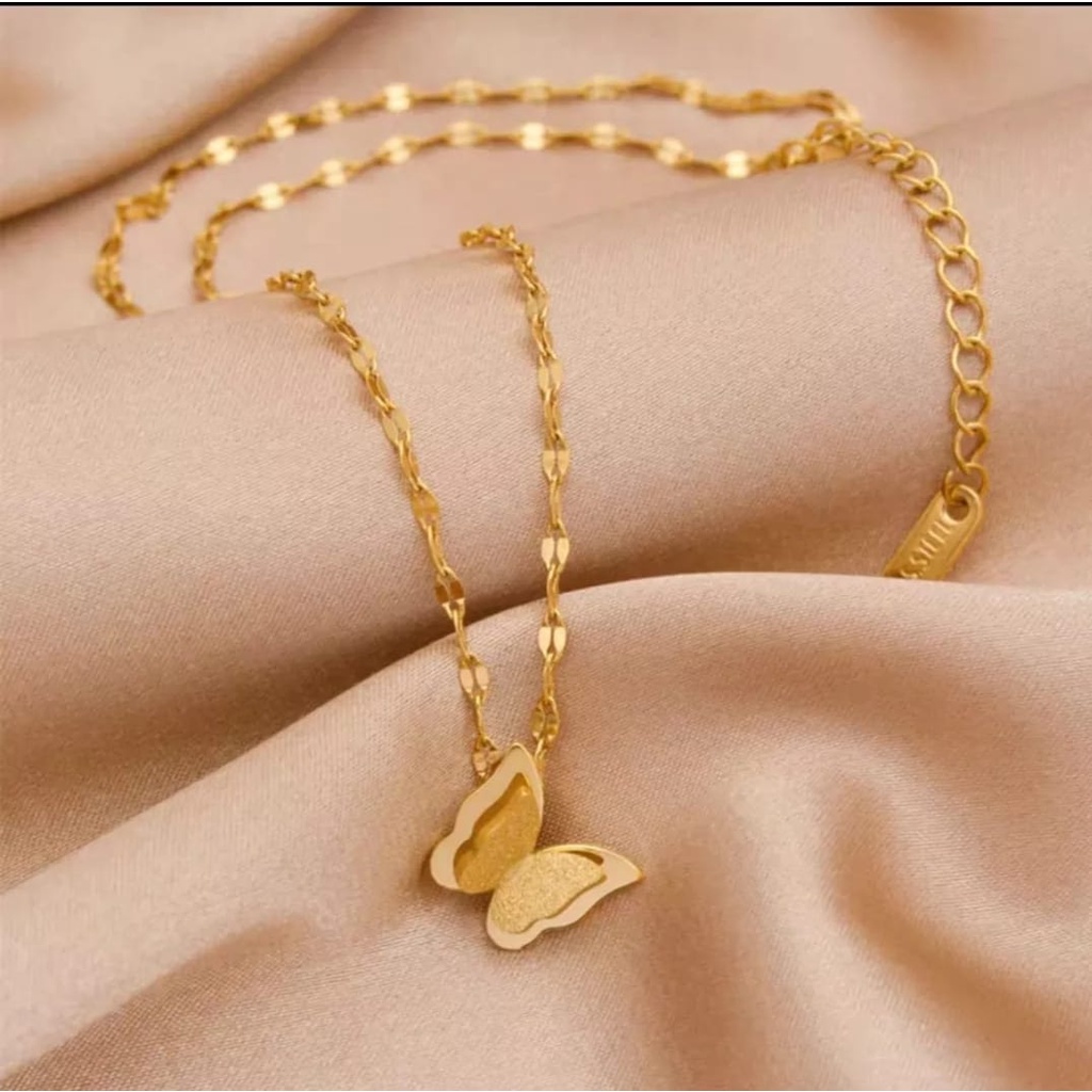 Detail kalung wanita titanium rantai pecah kopi liontin kupu kupu anti karat