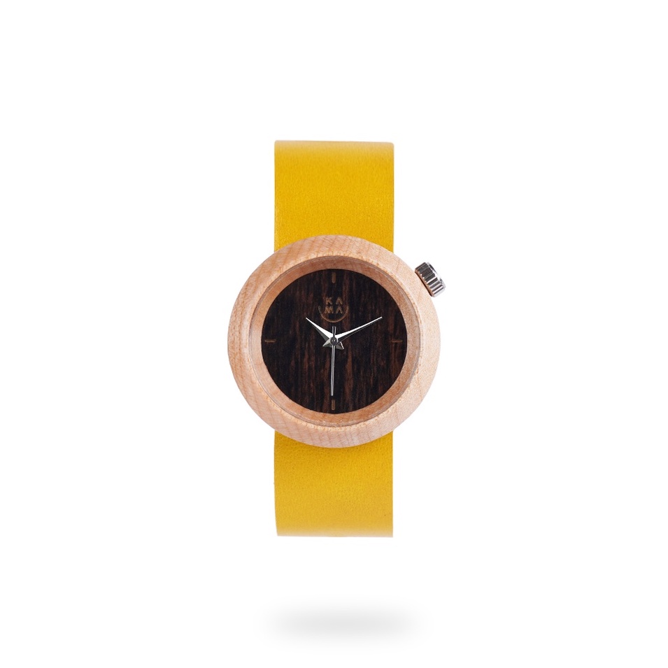 Kama Jam tangan kayu handmade dari Yogyakarta, didesain untuk pria dan wanita dengan ukuran diameter 43mm (pria) dan 35mm (wanita). Head jam tangan kayu Kama terbuat dari 3 varian jenis kayu yang bebas kamu pilih : - Maple - Sonokeling - Jati