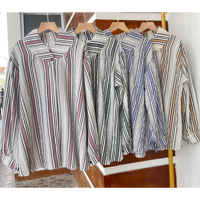 Hanya atasan saja ya dear,atasan motif salur ini berbahan crinkel motif salur ini bisa kalian mix dengan kulot,cutbray,rok dll,tergantung selera kalian ya. Atasan ini pun bisa kalian pakai BB besar sampai 85kg aman sayang ya,karena cuttingan nya sengaja di bikin oversize gitu.