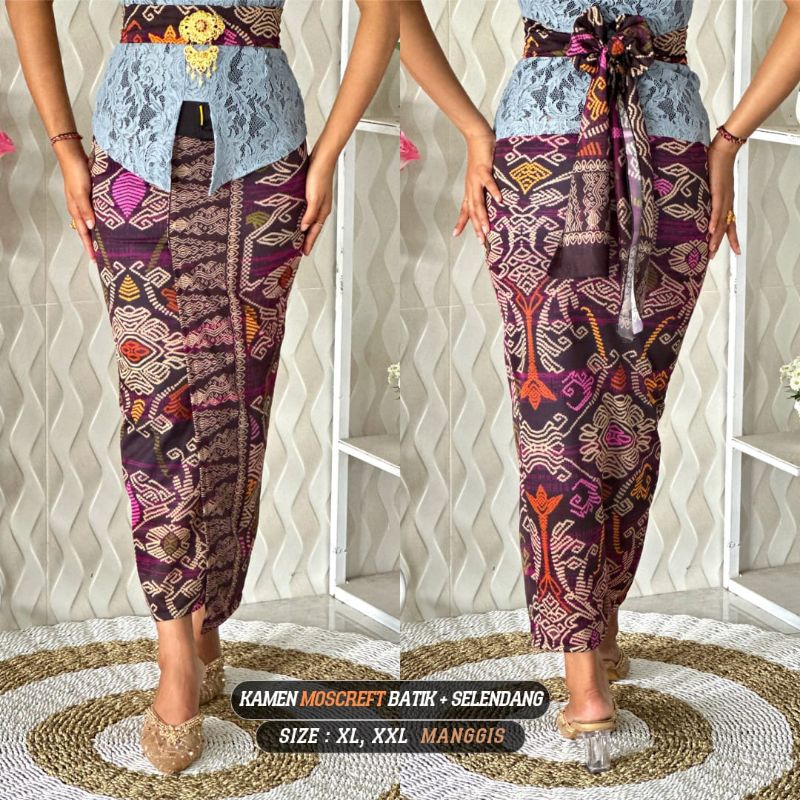 Kamen bali / rok jadi moscrepe batik + selendang size XL XXL