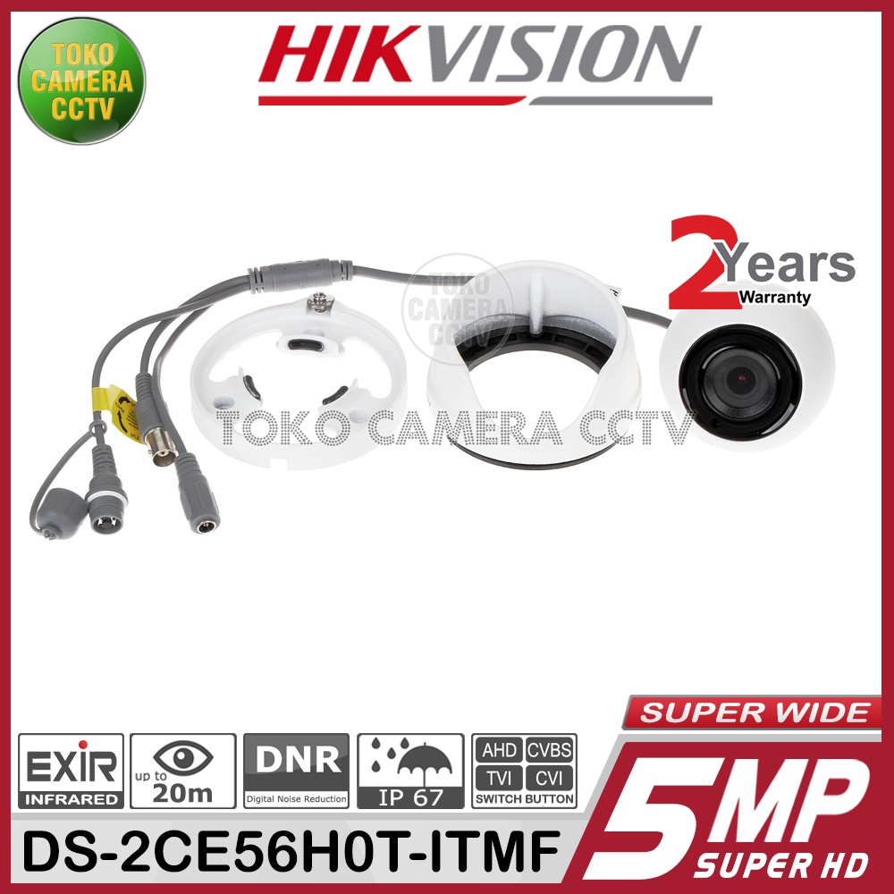 KEUNGGULAN dan FITUR : -LIMITED EDITION Super Wide dengan Body Metal. -Sudut pandang yang lebih lebar dibandingkan dengan seri sejenisnya. -Kamera dengan Resolusi 5MP SUPER HD (2560 × 1944) -ICR,untuk memberikan warna gambar yang lebih jelas dan lebih natural. -Teknologi EXIR dari Hikvision,memberikan pengawasan malam hari terbaik. -SMART IR,Sensor Otomatis Infra Red,jika dalam keadaan gelap. -AGC,untuk meningkatkan sinyal kamera dalam kondisi cahaya yang minim atau rendah. -OSD up to Coax,memudahkan pengaturan setting kamera. -DNR,Untuk mengkoreksi Noise objek. -DWDR,berfungsi mengatur brightness pencahayaan untuk mengatasi objek gelap akibat silau. -Tombol Switch,untuk merubah output video TVI/AHD/CVI/CVBS -kamera ini bisa digunakan di hampir semua DVR yg support 5MP. -Klaim Garansi bisa di TOKO CAMERA CCTV. -Bergaransi Resmi HIKVISION 2 Tahun.