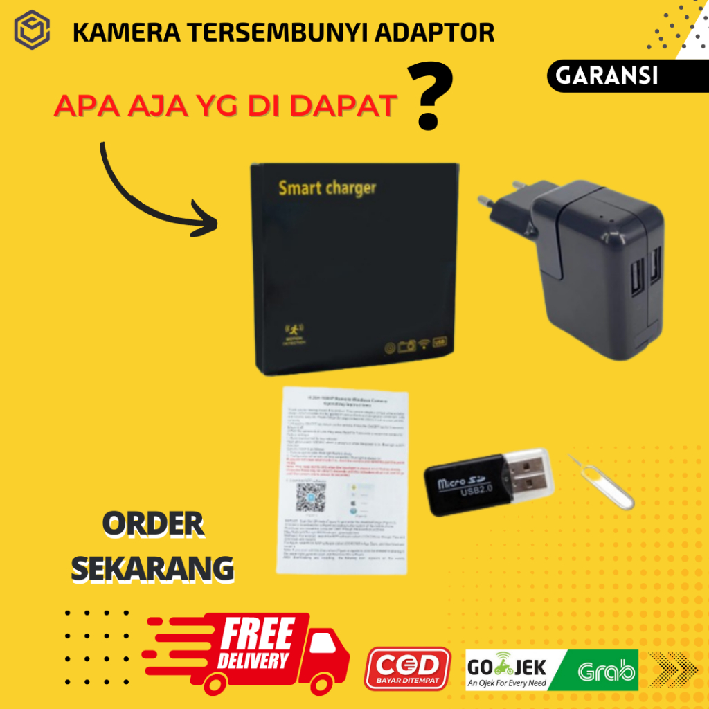 Terbaru , Produk Kamera Tersembunyi WIFI Model Adapter Charger Dengan 2 Port USB , Dengan Lensa Kamera Yang Tersembunyi , Target Di Jamin Tidak Akan Mengetahui Adanya Kamera Di Adaptor Charger Tersebut . Dengan Kualitas FHD 1080P, Hasil Kamera Sangat Jernih Untuk Memantau Objek Yg Di Tuju , Sangat Cocok Di Tempatkan Di Ruang Tamu , Ruang Belajar Anak , Tempat Usaha , Ruang Pribadi , dll. Selain Adanya Kamera, Terdapat 2 Port USB , Untuk Pengisian Daya Ponsel, Gadget, dll, Menggunakan Kabel USB.