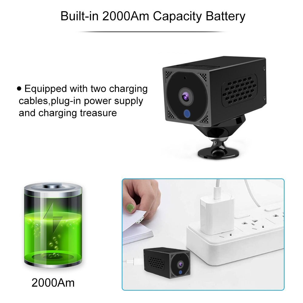 Ip Camera Mini Yang DiDesain CCTV Terkecil Dan Bisa Di Bawa Ke Mana Mana Dengan Kapasitas Daya Baterai Sebesar 2000 mAh, Walaupun Bentuk Kecil CCTV Ini Memiliki Kualitas Resolusi Video HD 1080P, Dengan Resolusi Kamera 2MP, Memiliki Fitur Infafred ( Night Vision ) .