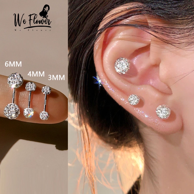 Detail Kami Bunga 1 Pc Elegan S925 Perak Bling Bling Zirkon Bola Sekrup Anting Untuk Wanita Perempuan Ditindik Halus Dua Bola Kecil Stud Earring Hypoallergenic Telinga Perhiasan Aksesoris
