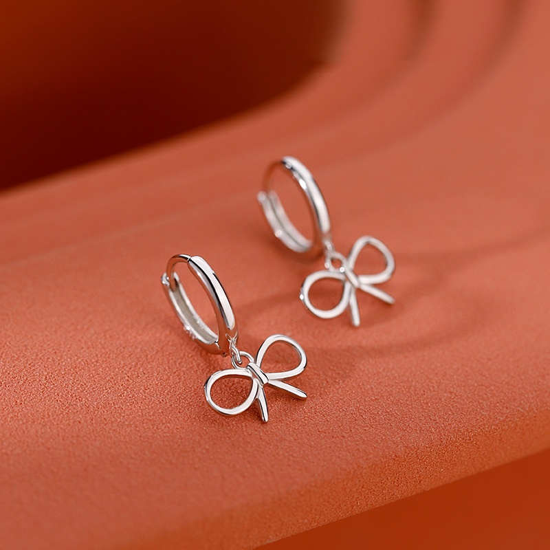 Detail Kami Bunga Indah s925 Perak Berongga Busur Hoop Anting-Anting Untuk Wanita Gadis Korea Ikatan Simpul Menjuntai Anting-Anting Fashion Telinga Perhiasan Aksesoris