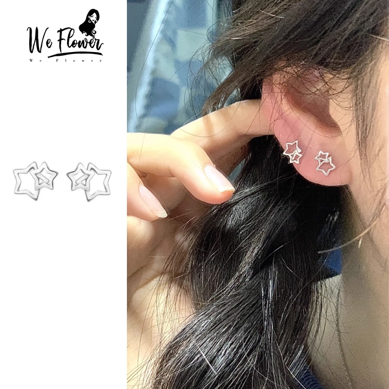 Aksesoris Fashion > Anting > Kami Bunga Indah s925 Perak Kecil Berongga Ganda Bintang Stud Anting-Anting Untuk Wanita Gadis Korea Lucu Anting-Anting Pakaian Sehari-Hari Pick Gratis Telinga Perhiasan Hadiah