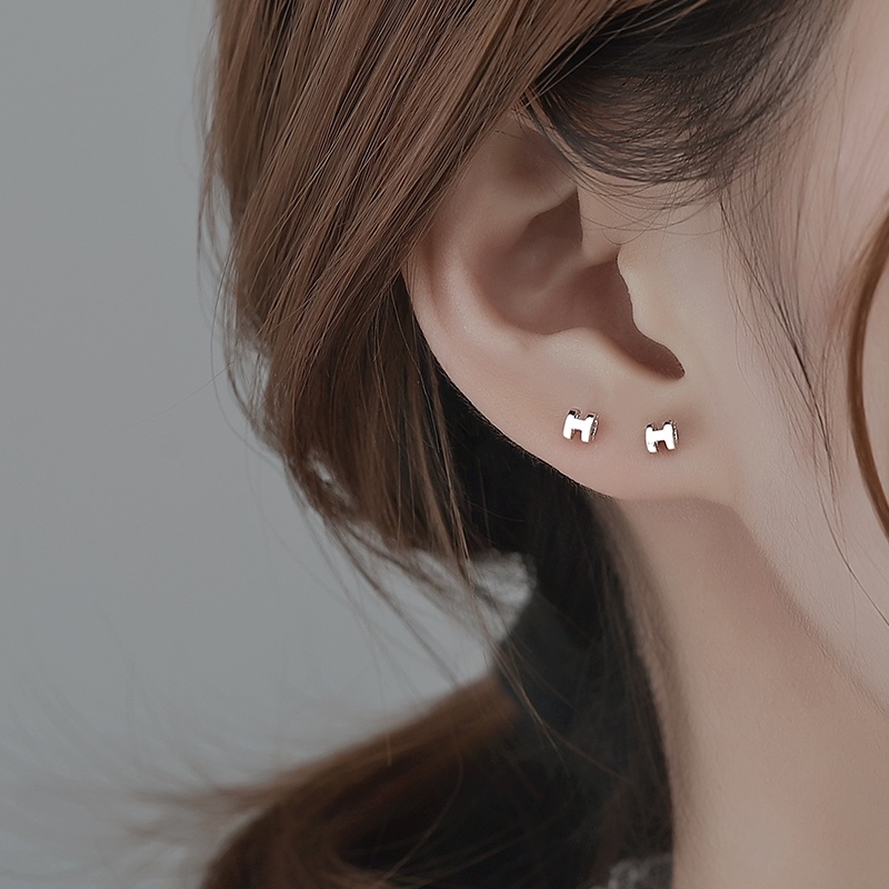 Aksesoris Fashion > Anting > Kami Bunga Korea s925 Perak Lucu 3D Mini Huruf H Stud Anting Untuk Wanita Perempuan Pakaian Sehari-Hari Hypoallergenic Earring Pick Gratis Telinga Perhiasan Aksesoris
