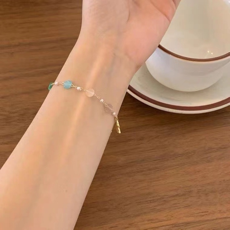 Aksesoris Fashion > Gelang Tangan & Bangle > Kami Bunga Manik-Manik Hijau Halus Bersinar Kupu-Kupu Pesona Gelang Untuk Wanita Gadis Indah Emas Pergelangan Tangan Rantai Persahabatan Gelang Perhiasan Hadiah