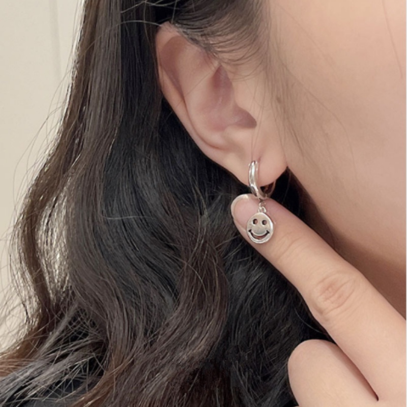 Aksesoris Fashion > Anting > Kami Bunga Punk Perak Lucu Smiley Face Kecil Hoop Earrings Untuk Wanita Pria Unisex Fashion Wajah Bahagia Menjuntai Anting-Anting Trendi Hypoallergenic Telinga Perhiasan Hadiah