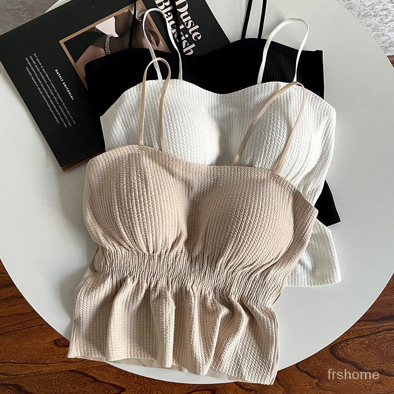 Detail Kamisol kecil wanita one-piece musim panas memakai all-match short tube top bottoming top dengan ban