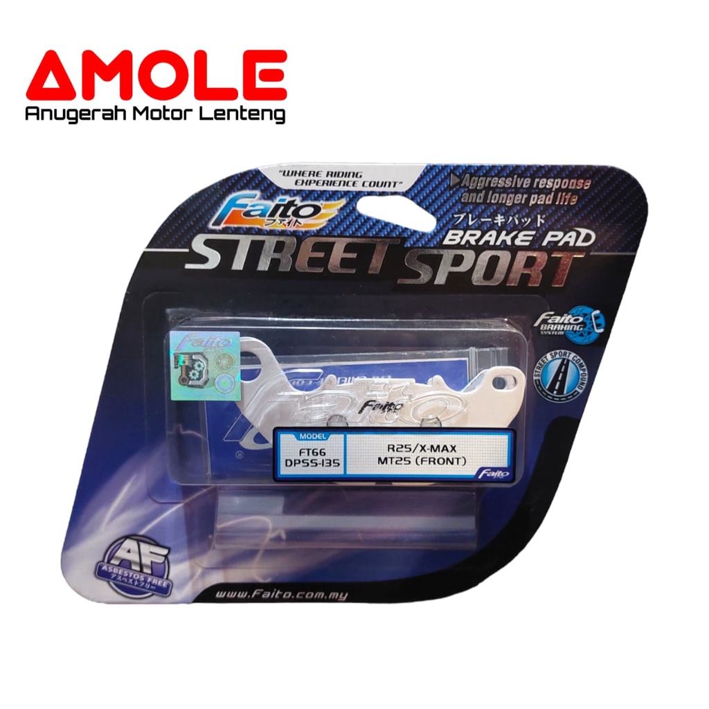 Kampas Rem Street Sport FAITO merupakan Kampas Rem yang tahan terhadap panas sehingga aman saat melewati jalan turunan maupun jalanan padat dan macet, Kampas Rem Faito memberikan efek pengereman yang efektif tanpa merusak Disc Brake, menjadikan Disc Brake lebih awet.Terbuat dari bahan khusus sehingga mengurangi suara operasi pengereman