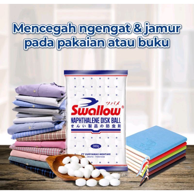 Isi : 1 Pack Kamper Swallow Napthalene ball 300 gr