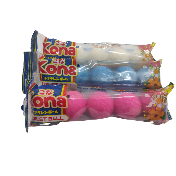Kona Toilet Colour Ball Efektif menghilangkan bau toilet dan mencegah ngengat dan penjamuran. - 100% Original - Penghilang bau bermutu tinggi - Merk : Kona - Isi : 5 butir - Berat bersih : 200 gram Bahan aktif : Paradichlorobenzene 99,6%