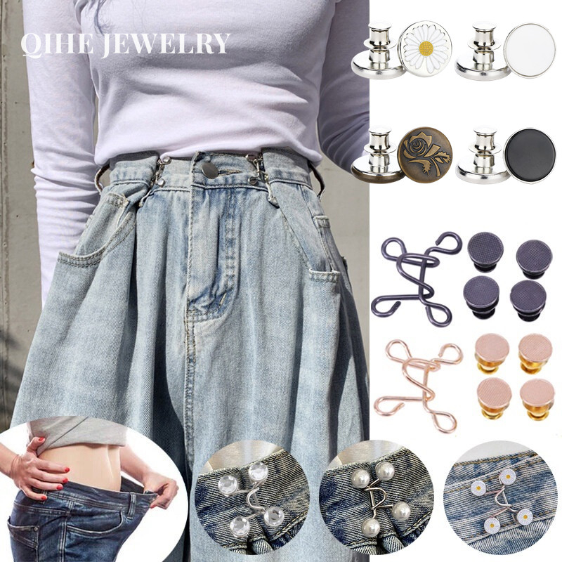 Detail Kancing Jeans Adjustable Bongkar Pasang Daisy Model Bebas Paku Pinggang Shorten Belt Metal Buckle Pant Waistband
