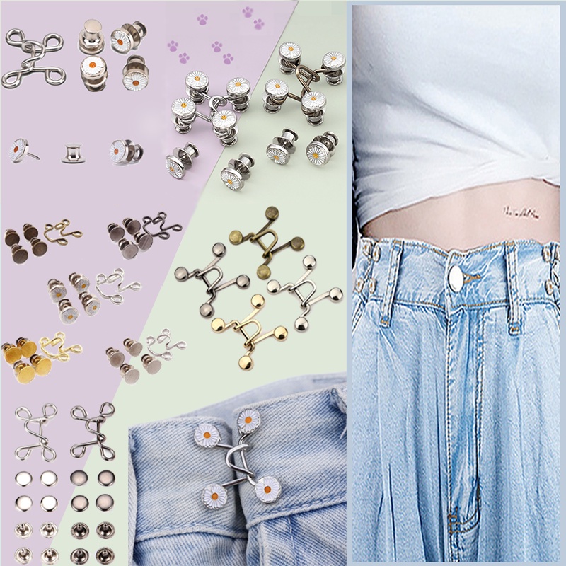 Detail Kancing Jeans Adjustable Kancing Pengait Celana Panjang Jeans Denim Bunga Daisy Warna Kait Pengecil Lingkar Kancing Celana Jeans Serbaguna Dilepas Logam - PD