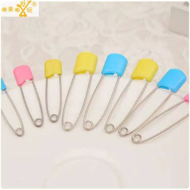 Peniti Baju Celana Bayi / Anak - anak Spesifikasi : Ukuran : 4 cm Berat : 5gr Warna : Random Material : ABS Metal