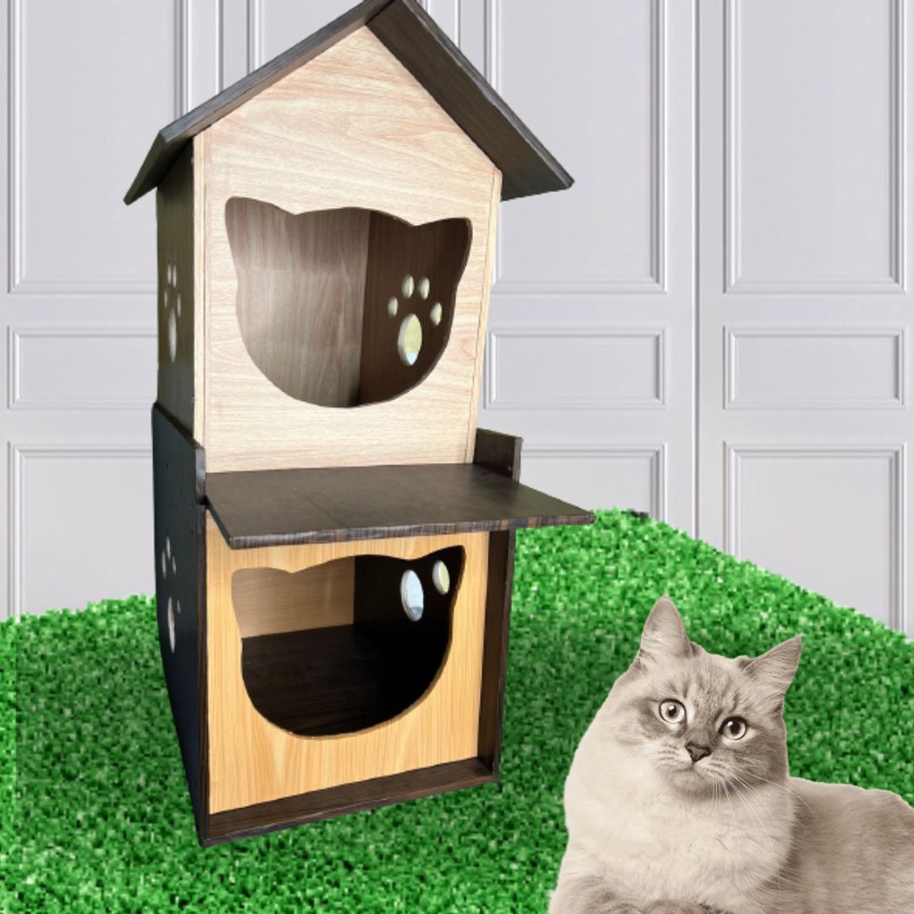 rumah kucing produk kami dengan disain kekininia tidak hanya memberi kenyamanan bagi hewan kucing/ anjing dan kelinci kesayangan dengan tampilan yang elegan juga memberikan kesan manis dan enak di pandang sebagai penghias tambahan interior dalam rumah/ teras rumah,.