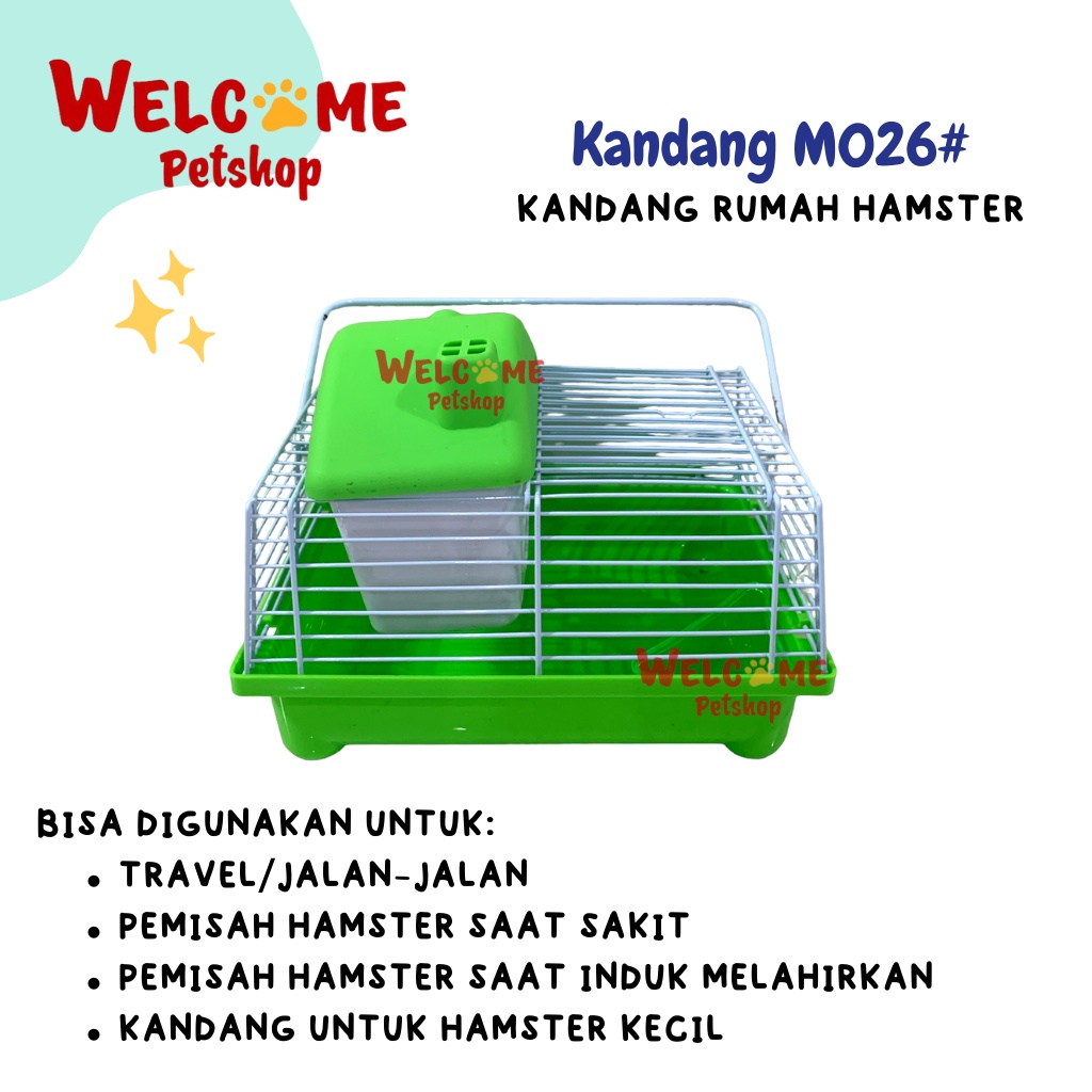 Kandang M026 rumah untuk hamster kesayangan. Ukuran kandang mini/kecil bisa digunakan saat travel/jalan-jalan ke luar kota atau ke mall. Bisa juga dijadikan kandang sementara ketika ada hamster sakit/luka agar tidak menyebar ke hamster lain nya.