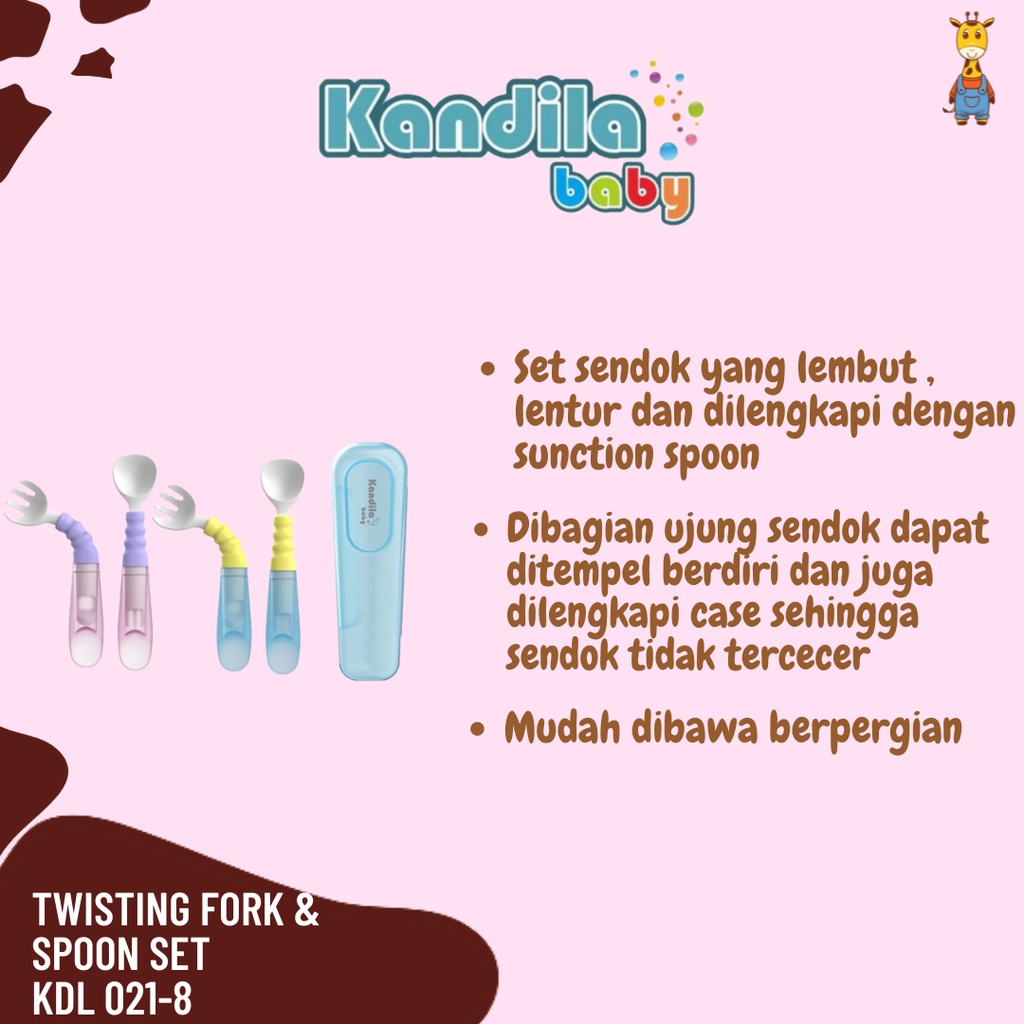 Kandila Fork & Spoon Set Multifunction & Portable Set sendok yang lembut , lentur dan dilengkapi dengan sunction spoon (dibagian ujung sendok dapat ditempel berdiri dan juga dilengkapi case sehingga sendok tidak tercecer, mudah dibawa bepergian) Berbahan BPA FREE sehingga aman digunakan untuk anak.