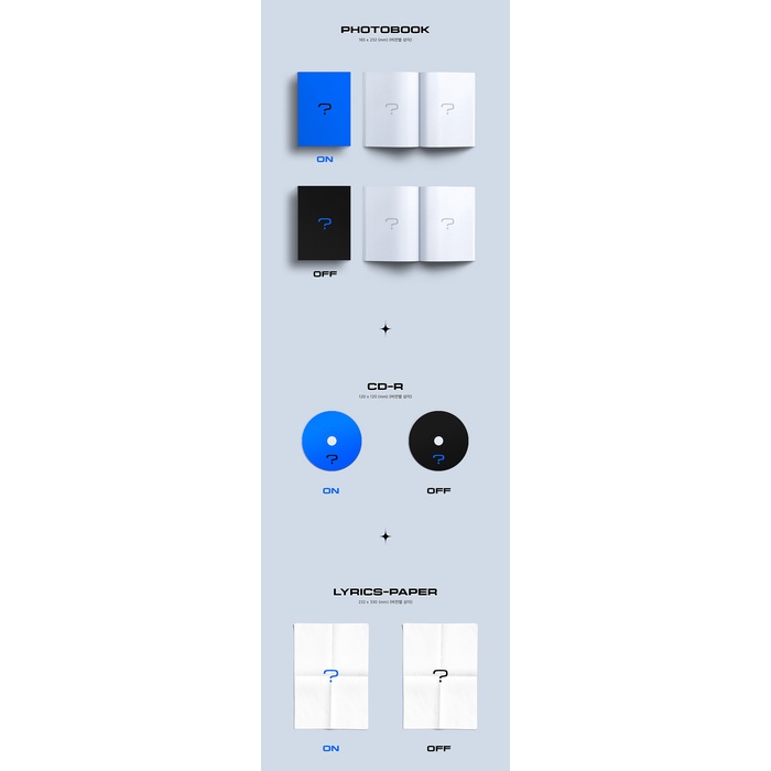 COMPONENTS โ ๐ฝ KANG DANIEL - 1ST FULL ALBUM [REPACKAGE : RETOLD] ใใ๐ VERSION: ON / OFF ใใ๐ BOX PACKAGE: 175*242*40mm ใใ๐ PHOTOBOOK: 165*232mm ใใ๐ CD-R: 120*120mm ใใ๐ LYRICS PAPER: 232*330mm ใใ๐ FOLDED POSTER: 232*330mm ใใ๐ POSTCARD: 102*142mm ใใ๐ ADVENT CALENDAR: 165*232mm ใใ๐ PHOTOCARD: 55*85mm | RANDOM 2 of 12 ใใ๐ SEAL STICKER: 40*40mm ใใ๐ POB PHOTOCARD: 55*85mm
