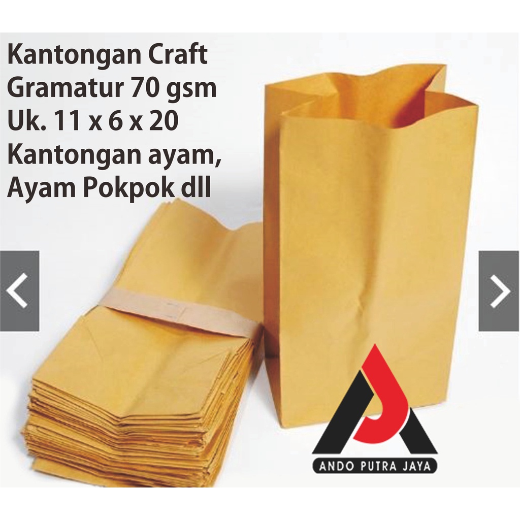 Makanan & Minuman > Makanan & Minuman Lainnya > Kantong Kertas Coklat, Paper Bag Coklat, kantong kertas samson, Kantong kertas Roti, kemasan makanan Uk 11 x 6 x 20 cm ( Minimal Order 50 biji )