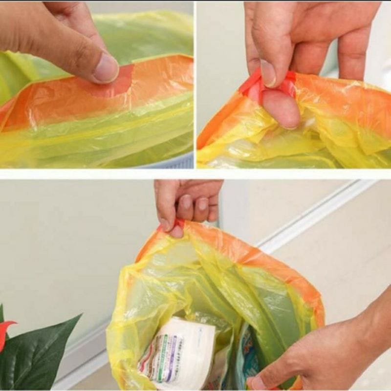 Kantong plastik sampah roll yang dilengkapi dengan tali. Jadi lebih mudah dan praktis. Ukuran Plastik : 45cm x 50cm