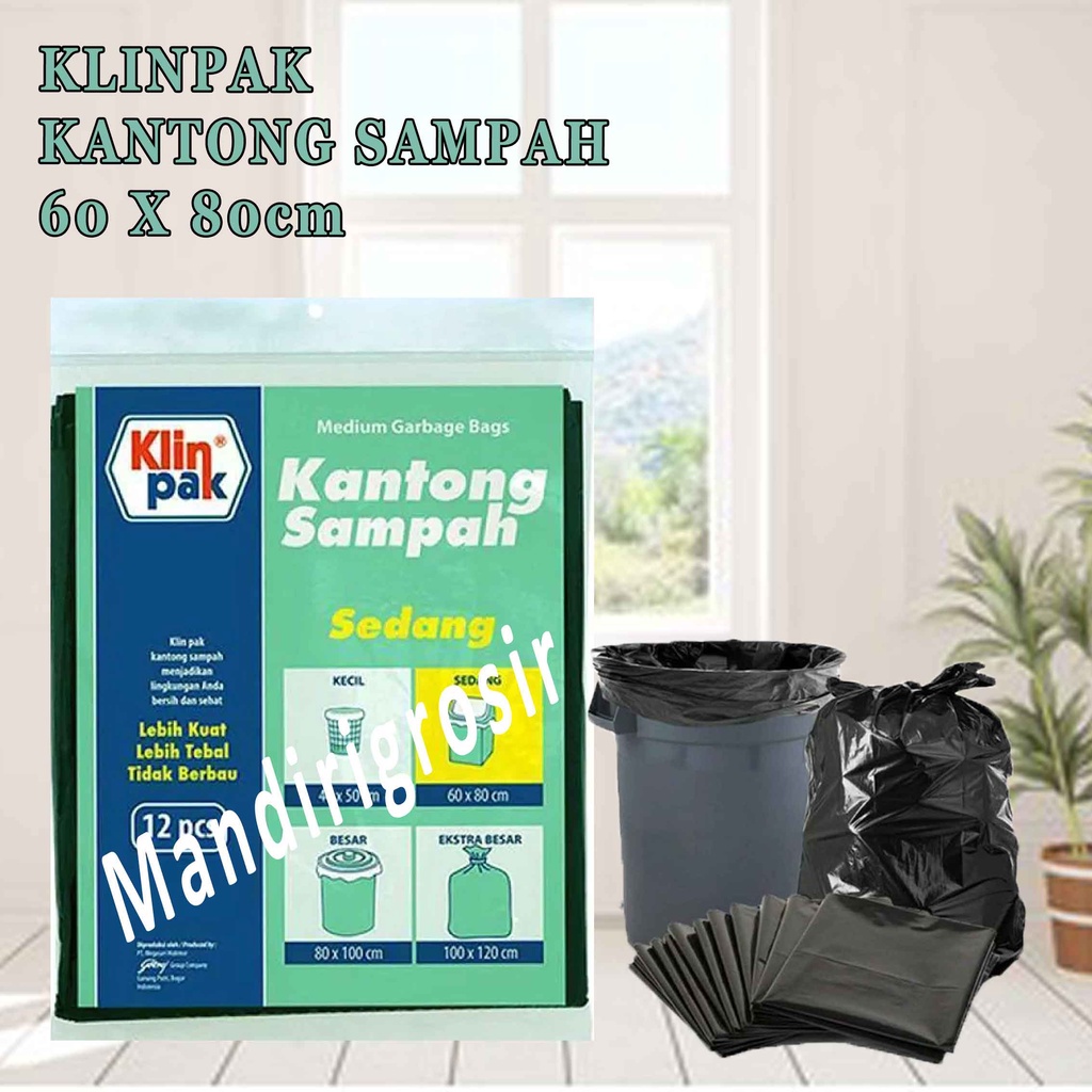 Kantong sampah / sedang / 60 X 80 cm / isi 12 pcs Klin pak kantong sampah menjadikan lingkungan anda bersih dan sehat. Lebih kuat lebih tebal dan tidak berbau Untuk tempat sampah sedang Ukuran 60 X 80 cm isi 12 pcs