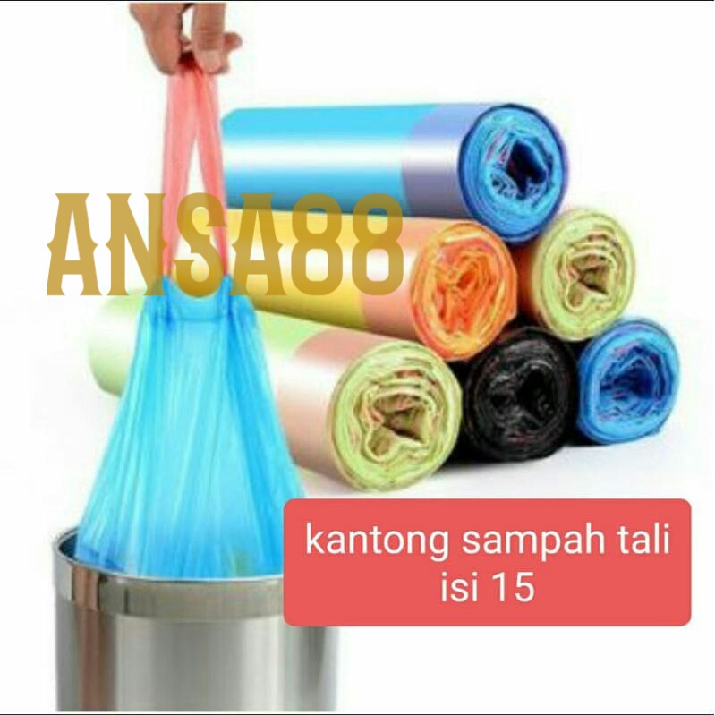 Perlengkapan Rumah > Alat Pemeliharaan Rumah > Kantong Plastik & Kantong Sampah > kantong sampah tali isi 15 45x50cm plastik sampah gulung tali isi 15 kantong sampah roll jumbo