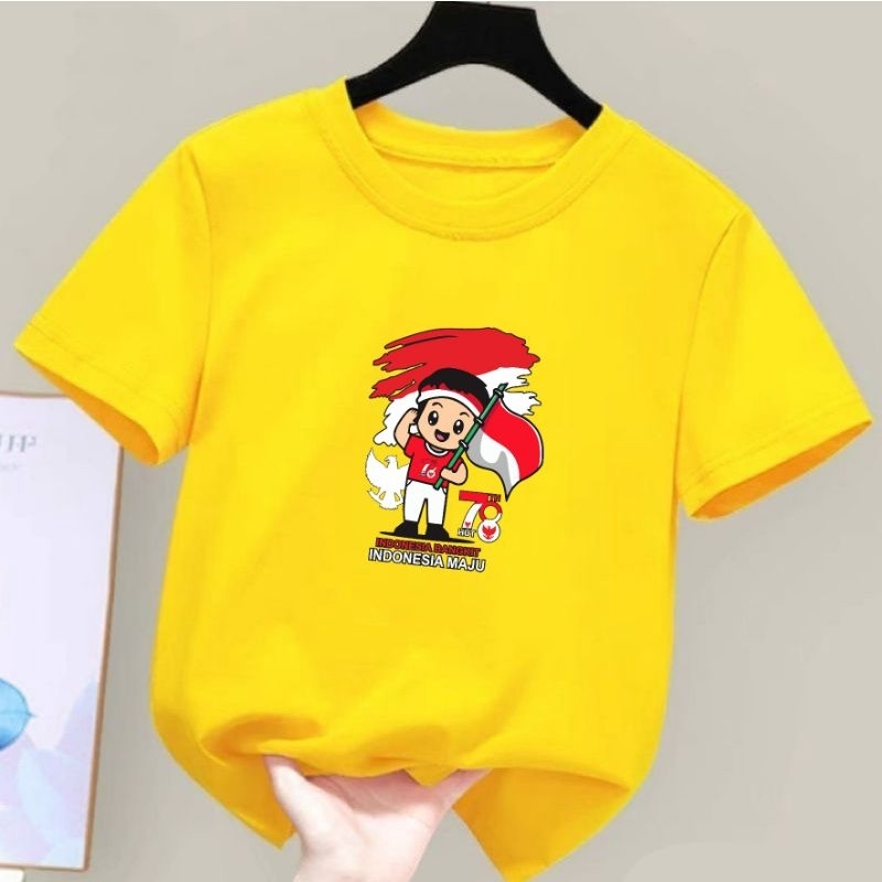Detail kaos anak anak 17 AGUSTUS DIRGAHAYU 2023 INDONESIA MAJU size s m l xl