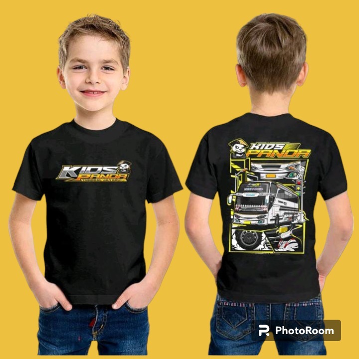 Detail kaos anak bus telolet depan belakang baju anak kids panda