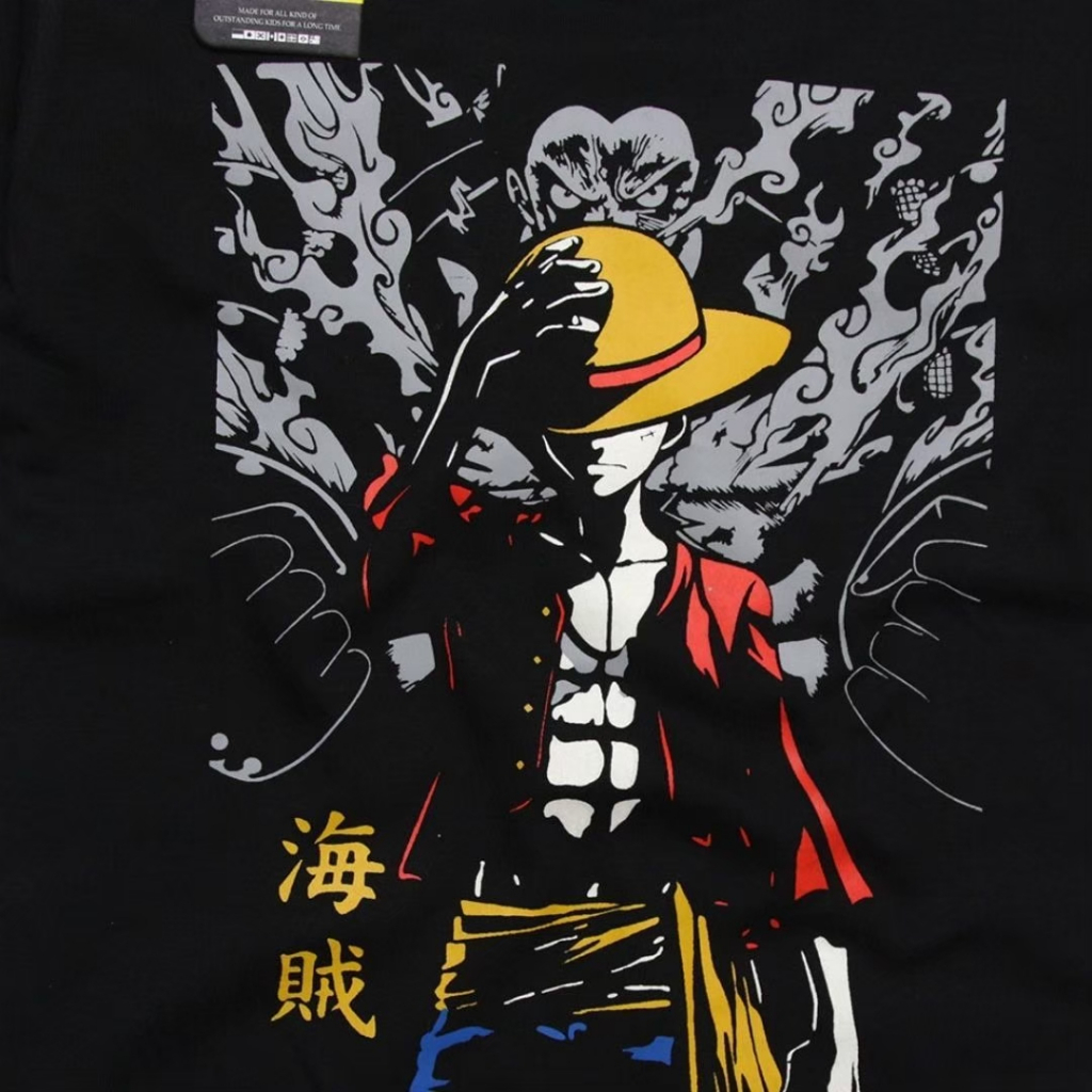 Detail Kaos Anak Distro Cowok Laki-Laki premium Lengan Pendek ONE PIECE ORANG TOPI HITAM groverti airlane point Bandung Abadigrosir