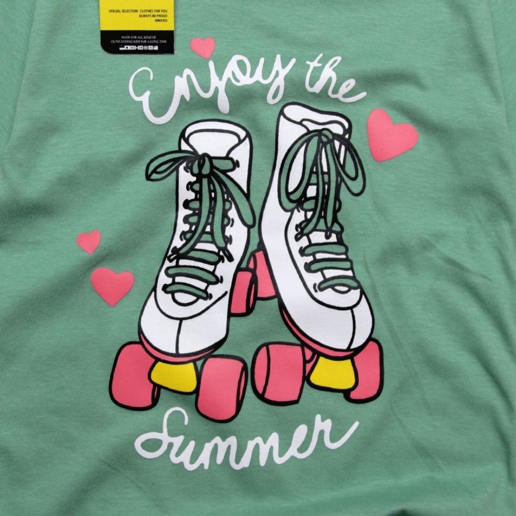 Detail Kaos anak Distro Perempuan Lucu Motif SEPATU RODA MINT Warna Sage Atasan Anak Cewe RGKIDS