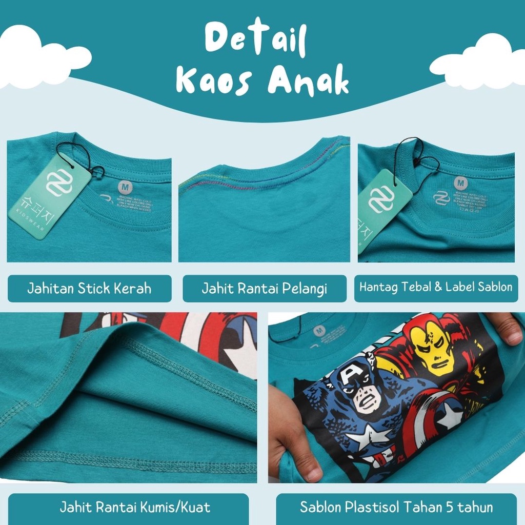 Baju kaos anak laki-laki dan perempuan Premium dengan gambar kekinian kualitas sablon plastisol yang terjamin ketahanannya dan tidak diragukan lagi oleh banyak orang. Bahan kaos terbuat dari katun combed reaktif dengan karakter bahan yang lembut, adem, menyerap keringat, dan ada sensasi rasa dingin saat dipakai. Foto Asli hasil jepretan sendiri.