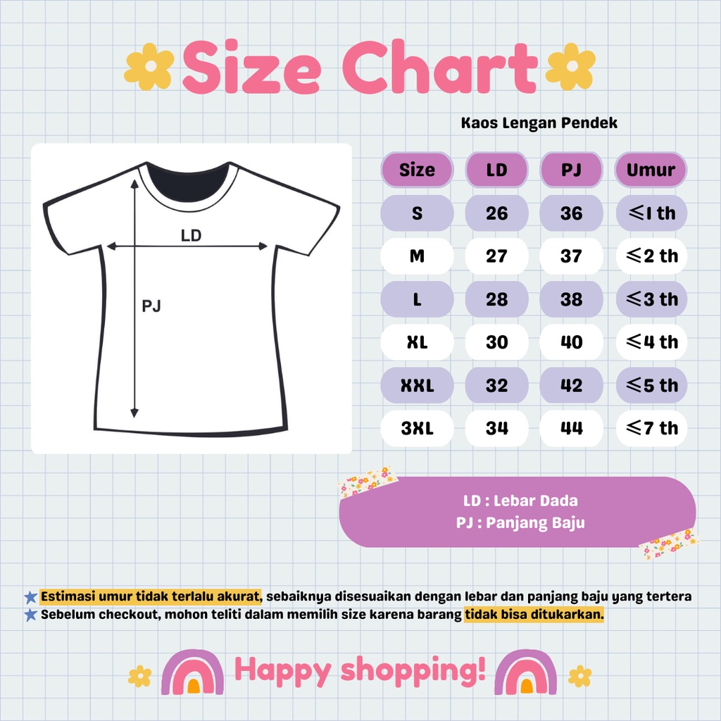 SIZE Baju Jadi tersedia : Lebih BIJAK pilih berdasarkan ukuran baju daripada umur anak [ S ] = Pjg-36cm LD-26cm (<=1 tahun) [ M ] = Pjg-37cm LD-27cm (1-2 tahun) [ L ] = Pjg-38cm LD-28cm (<=3 tahun) [XL] = Pjg-40cm LD-30cm (<=4 tahun) [XXL] = Pjg-42cm LD-32cm (<=5 tahun) [3XL] = Pjg-44cm LD-34cm (<=7 tahun)