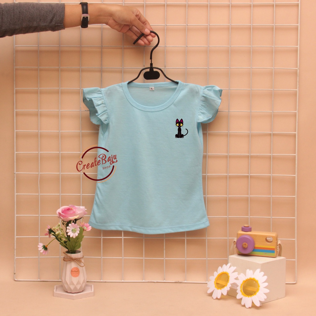 KAOS ANAK RUFFLE MOTIF BLACK CAT PEREMPUAN BAJU ATASAN ANAK CEWEK MOTIF TRENDY
