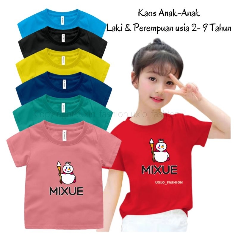 Detail KAOS ATASAN ANAK PEREMPUAN DAN COWO MURAH UMUR 2-9 TAHUN MOTIF MIXUE VIRAL UXLO FASHION