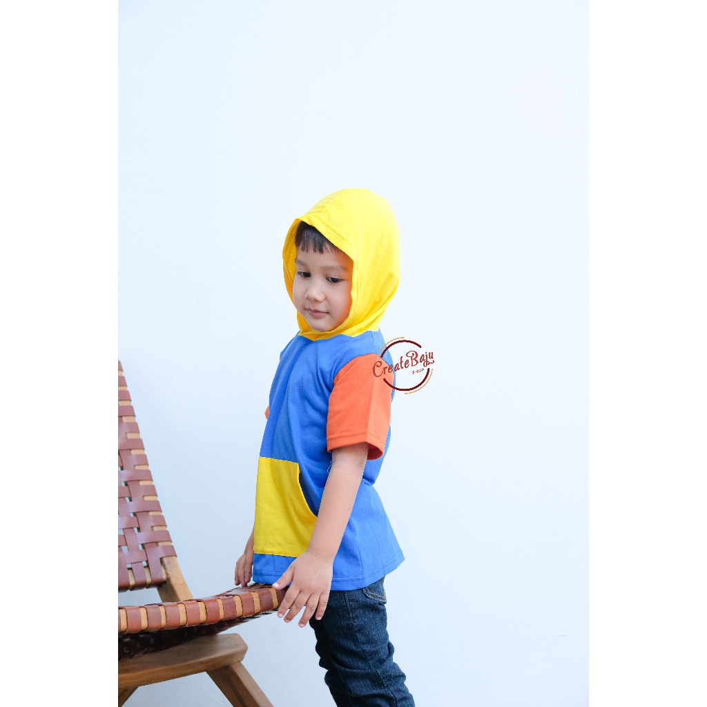 Detail KAOS ATASAN HOODIE ANAK KOMBINASI BIRU BENHUR BAJU ATASAN ANAK 1-7 TAHUN