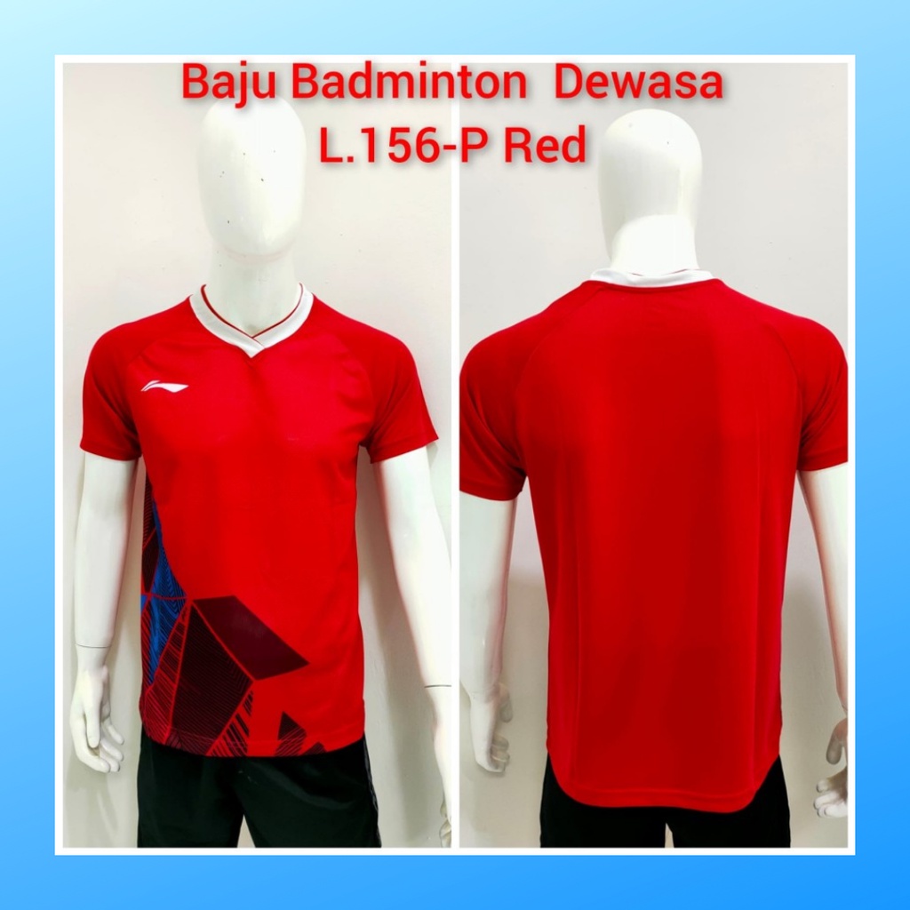 Detail Kaos badminton pria jersey bulutangkis baju atasan jersy wanita dewasa t-shirt outfit seragam kostum olahraga casual suit pakaian jarsey oblong apparel sports jersi bulu tangkis L156 merah polos