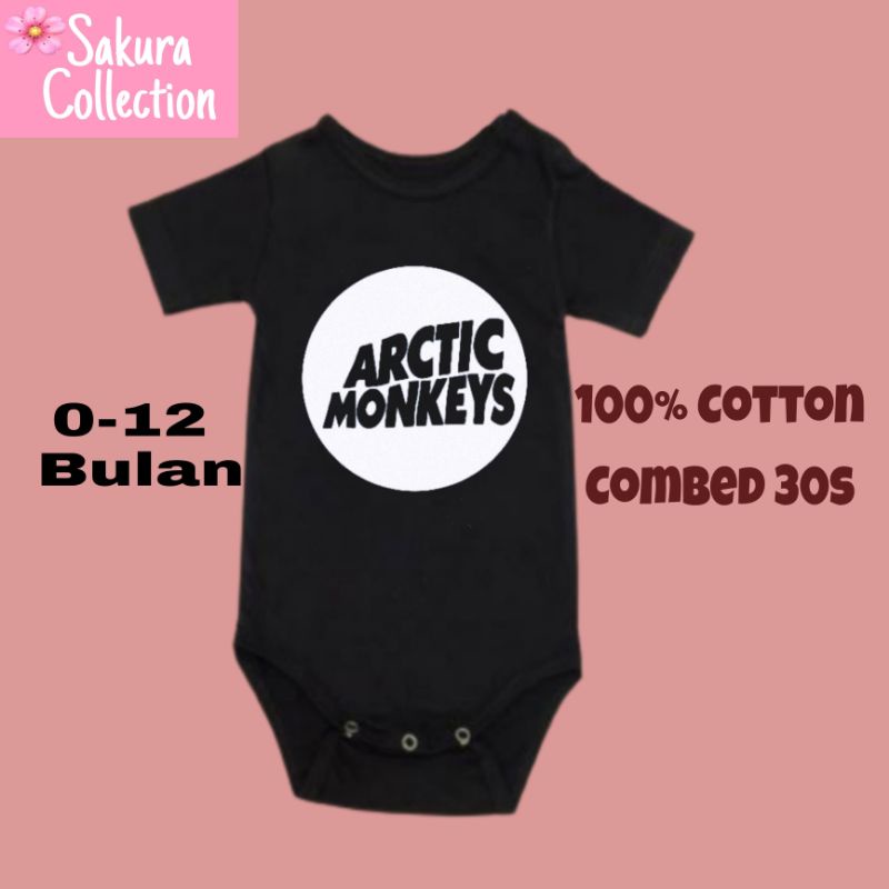 Kaos baju bayi jumper baby kids pendek band ARCTIC MONKEYS rock punk metal logo tulisan usia 0 1 2 3 4 5 6 7 8 9 10 11 12 bulan sampai umur 1 tahun adem jumpsuit babysuit romper bodysuit anak kecil hitam style laki laki perempuan unisex nyaman lembut