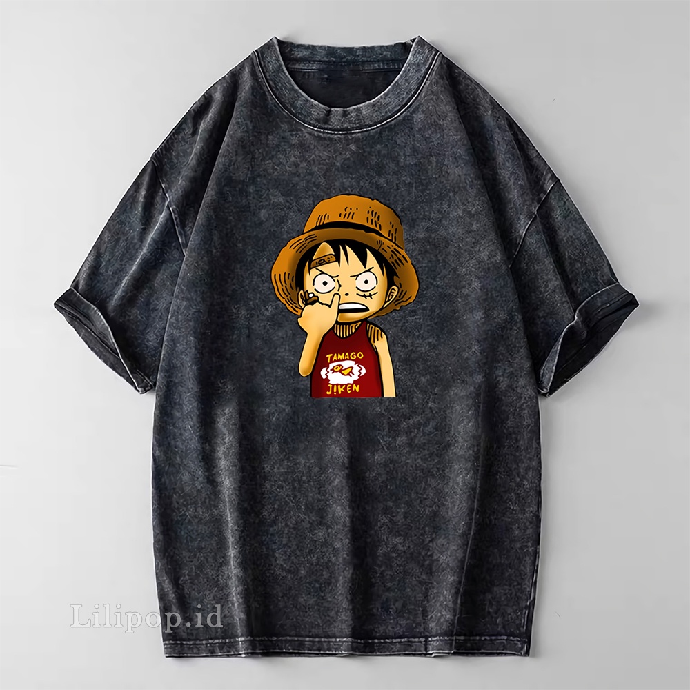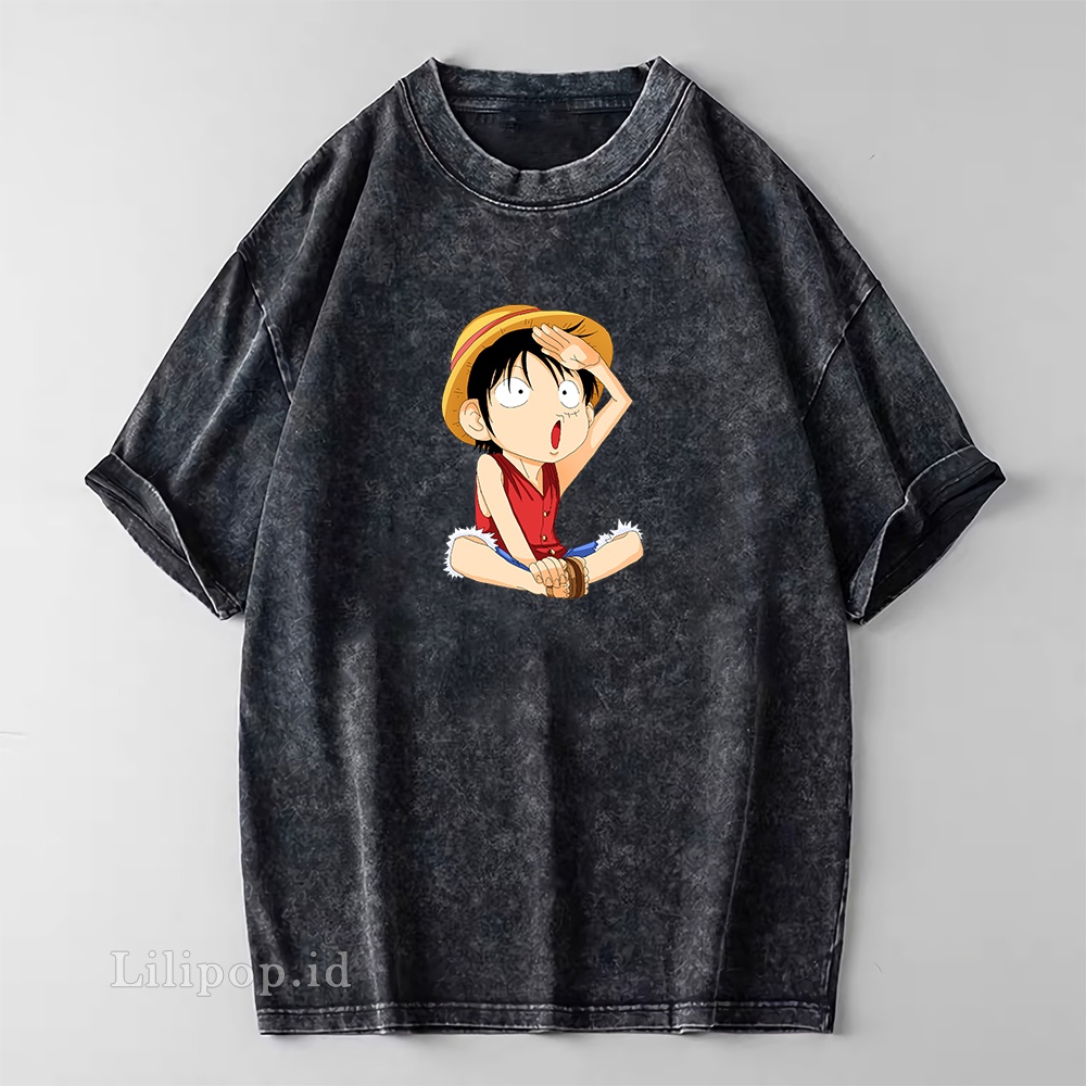 Detail Kaos Baju Wash Tshirt Lufy one piece Pria wanita Stone wash Baju Distro Basic Lengan Pendek unisex