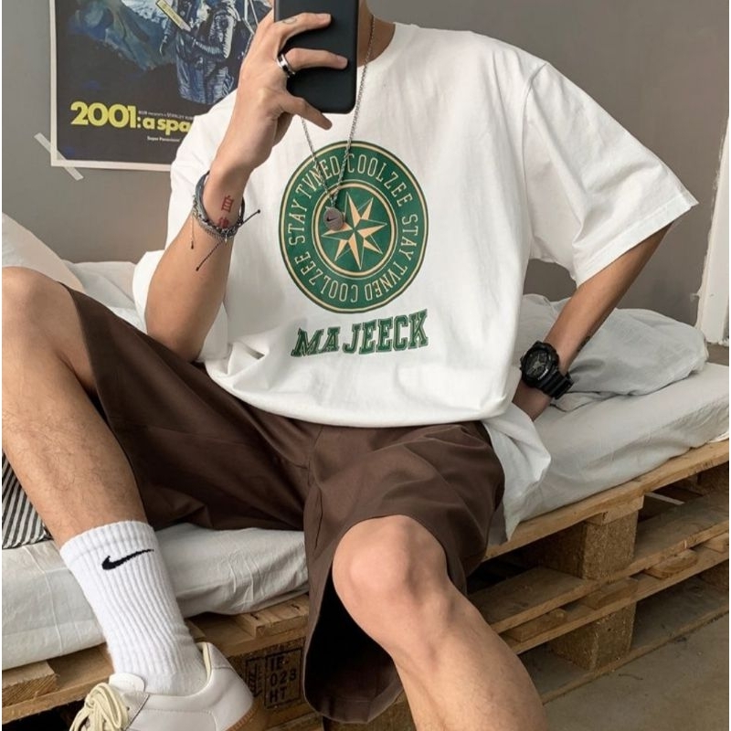 Pakaian Pria > Atasan > Kaos > Kaos BIGSIZE (M - 6XL) Unisex Cotton Combed MAJEECK STAYTUNED Korean Harajuku Style M L XXL XXXL 4XL 5XL 6XL T shirt Oversize Jumbo Hitam Putih Green