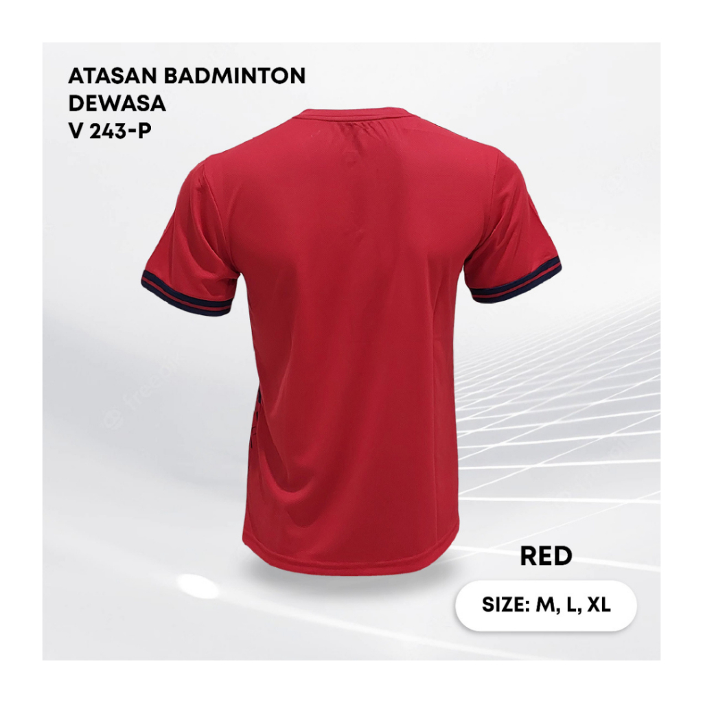 Detail Kaos bulutangkis pria V243 baju badminton atasan olahraga jersy wanita dewasa t-shirt outfit seragam kostum jersey casual suit pakaian jarsey oblong apparel sport jersi sudirman thomas uber cup bulu tangkis merah polos