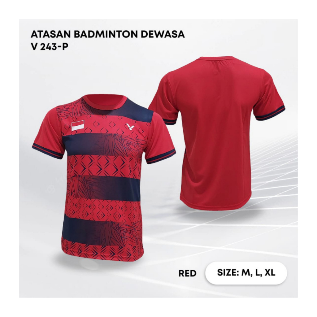 Kode: V243-P Merah Ready Baju Kaos Badminton lokal VICTOR Logo Baju : Printing UKURAN : M - L - XL