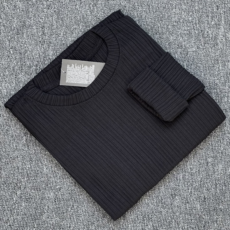 Kaos Polos Rib Wanita Cabut Jarum Plisket Lengan Panjang SR351