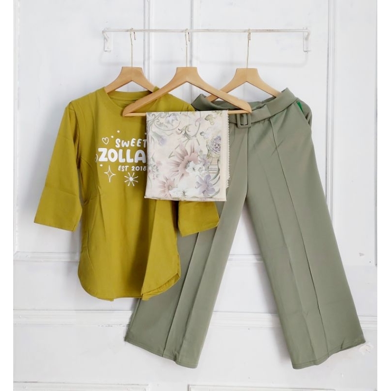 Kaos Combed Set Kulot Scuba + Hijab Voal Motif // PAKET HEMAT 3IN1 KULOT SET KAOS COMBED